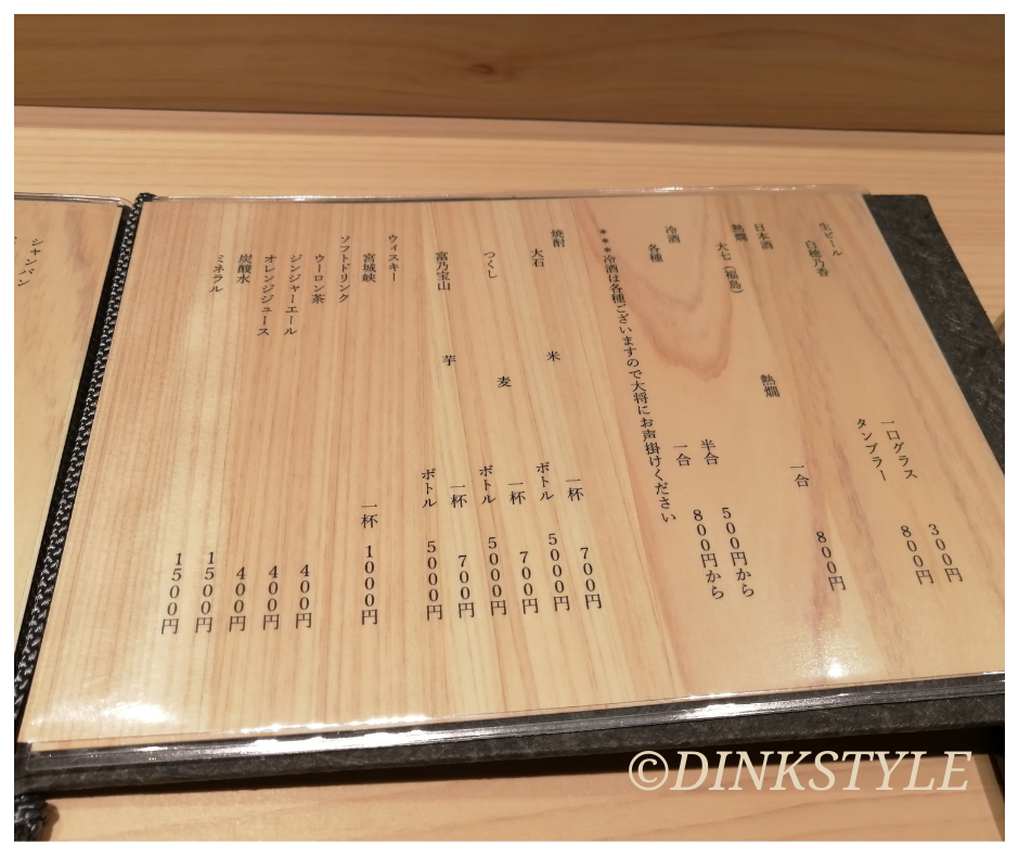 ドリンクメニューの一部です。白ワインやシャンパンもありました。
